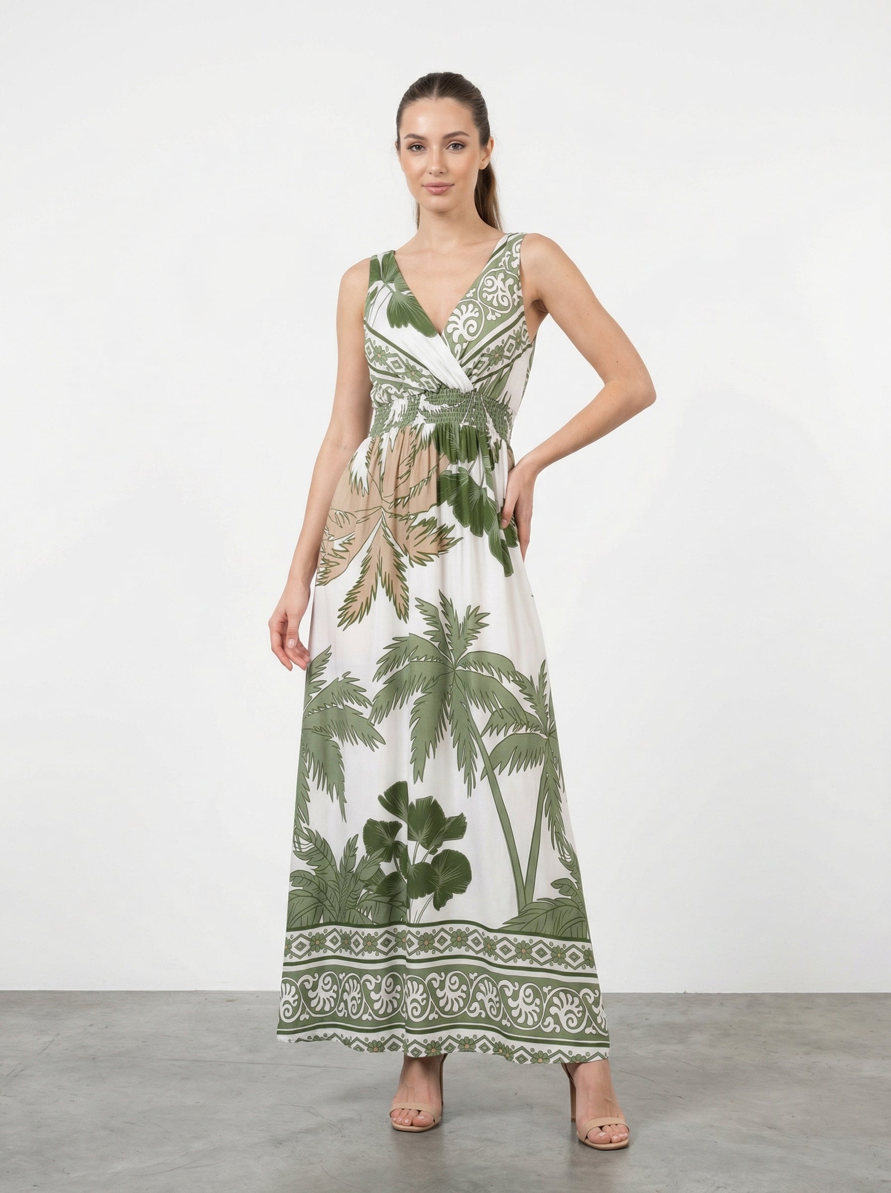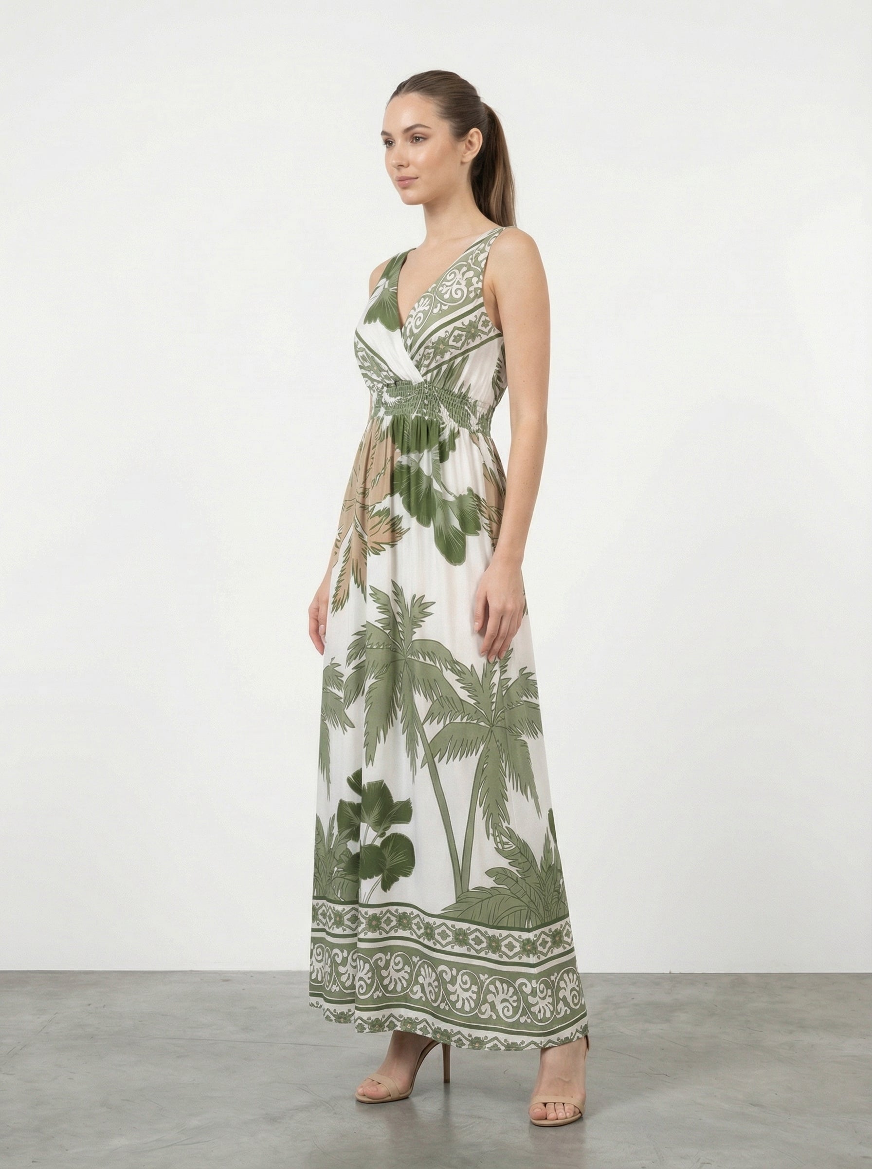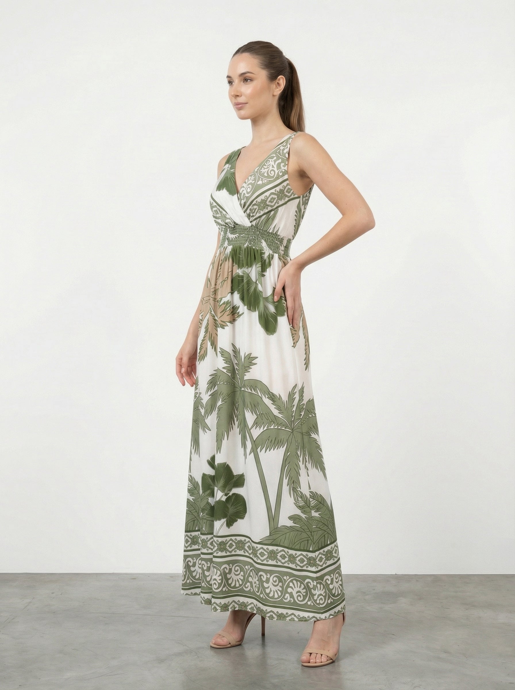 Abito lungo stampa tropicale