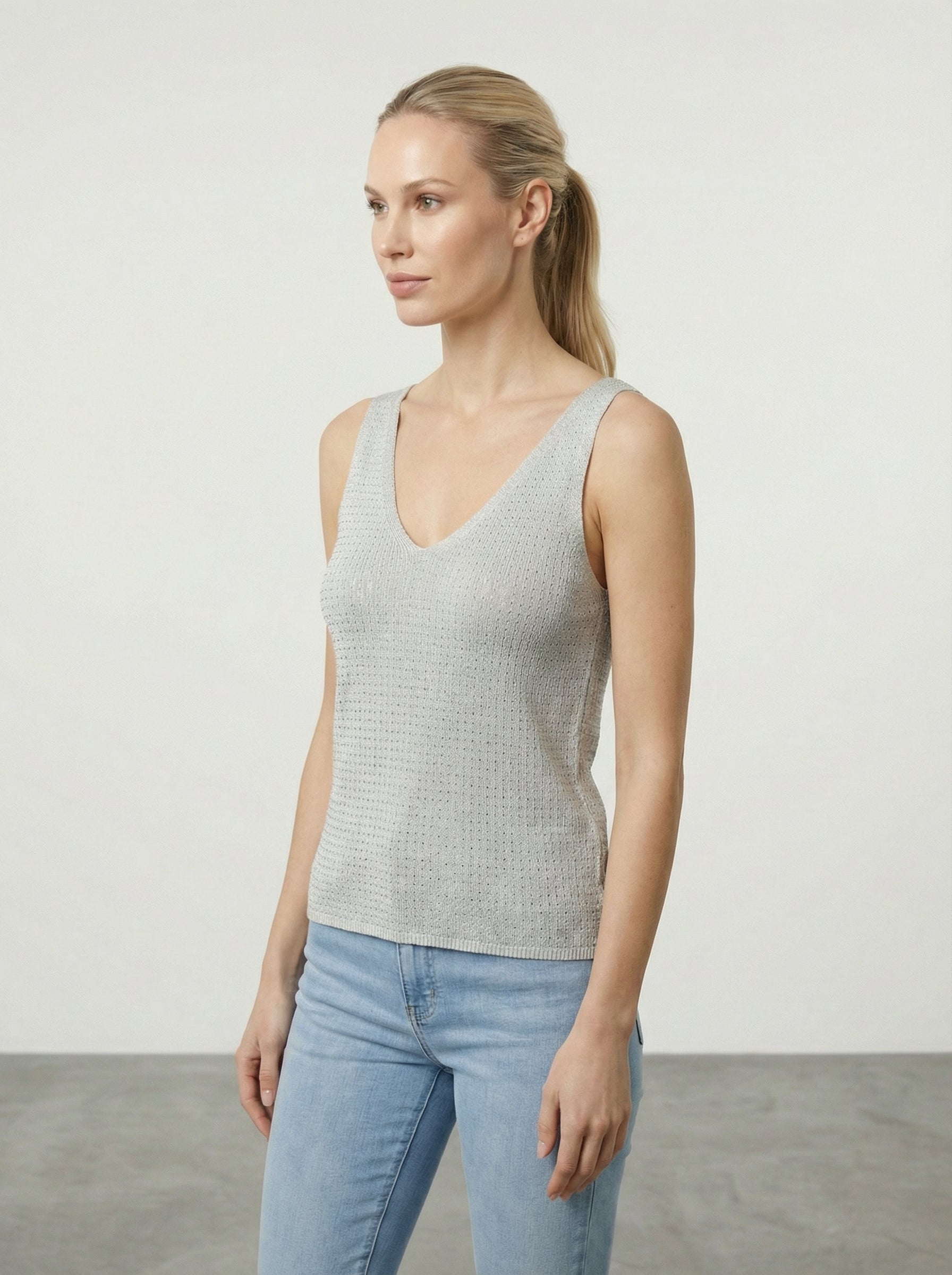 Canottiera scollo V con brillantini