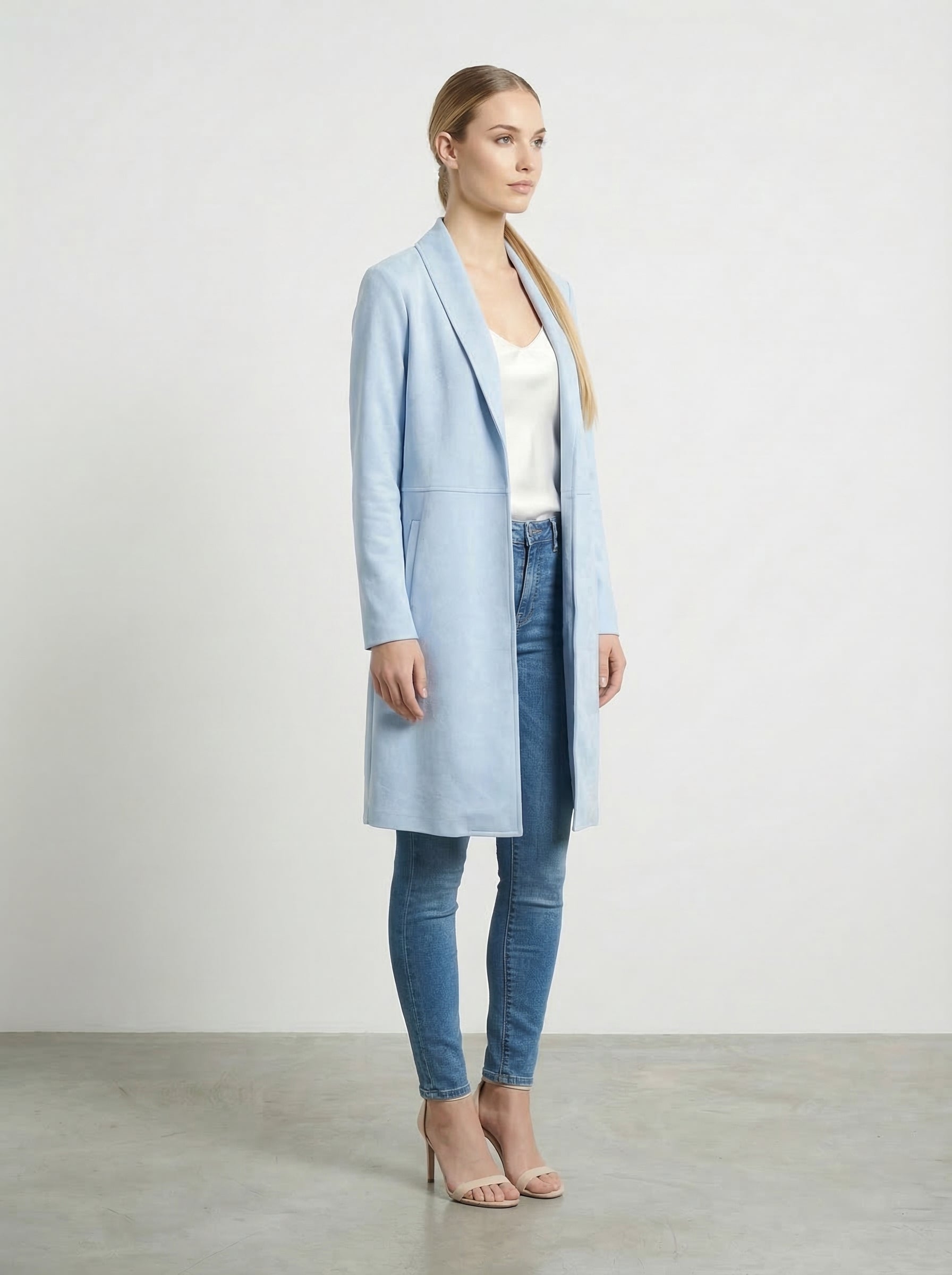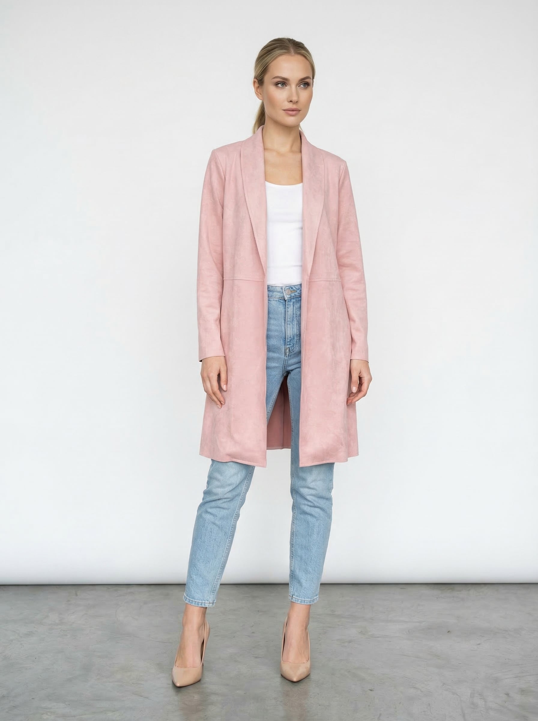 Cardigan lungo effetto scamosciato