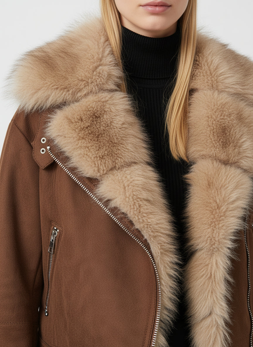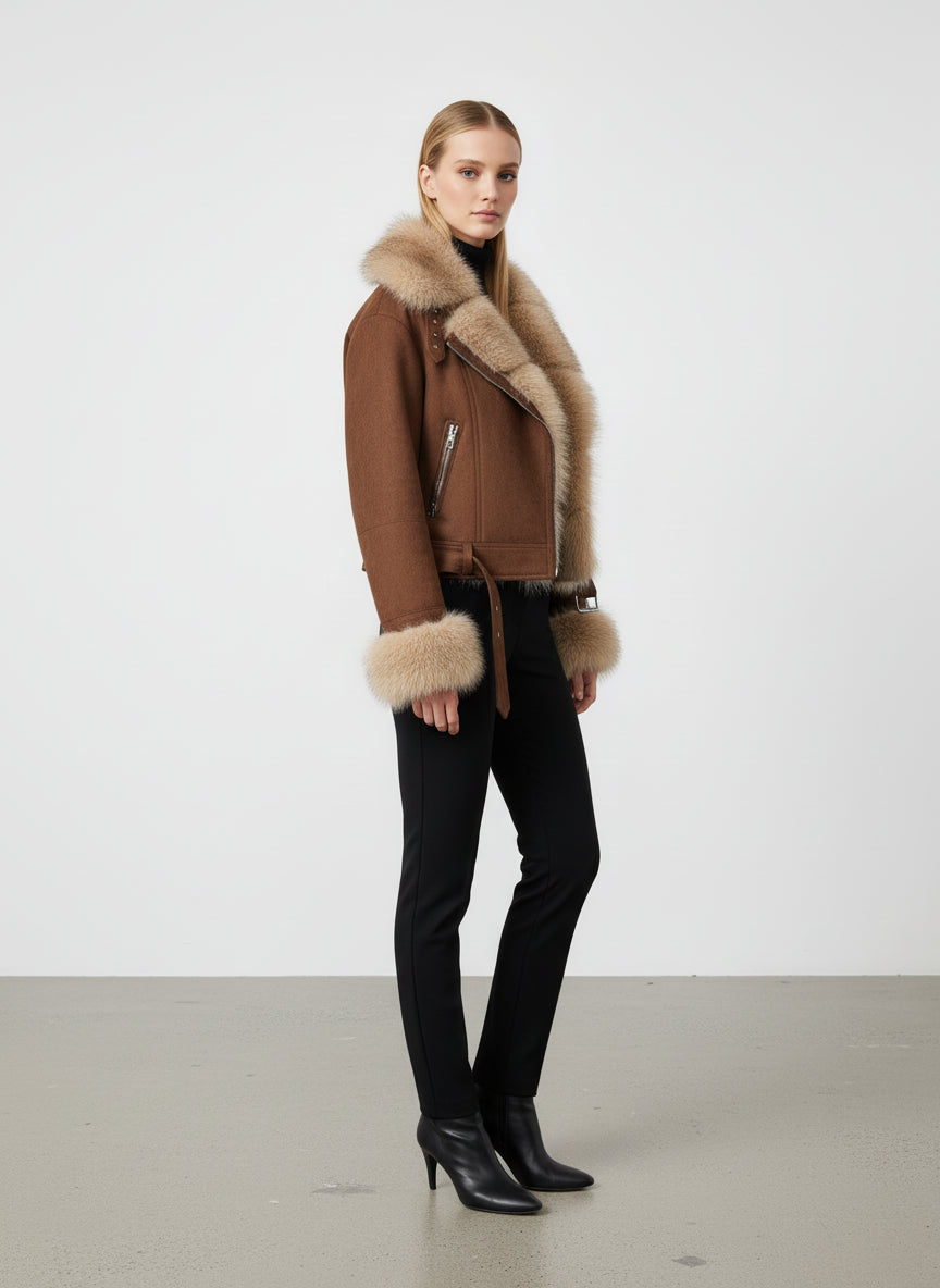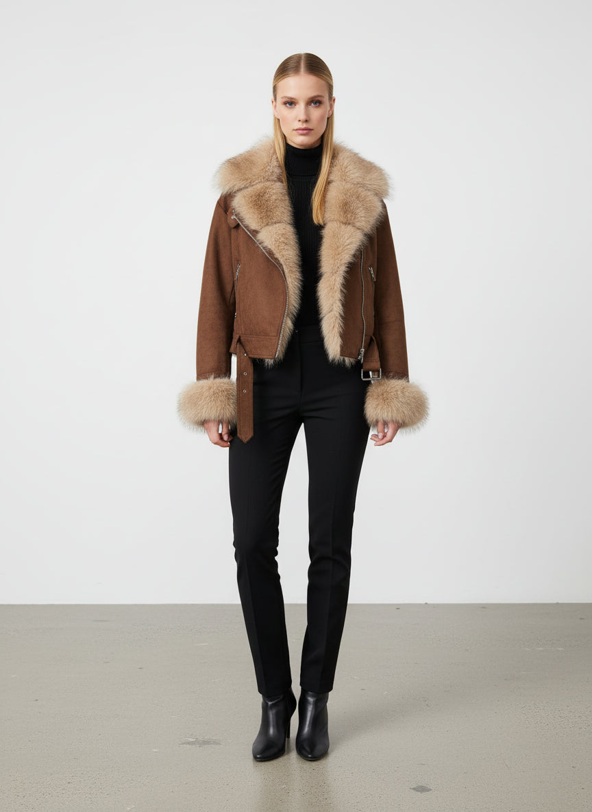 La giacca con pelliccia sintetica è un must-have per il tuo guardaroba invernale. Con il suo design elegante e la morbidezza dei materiali, questa giacca è perfetta per chi cerca un equilibrio tra comfort e stile. La pelliccia di alta qualità avvolge delicatamente il corpo, mentre il colletto ampio e i polsini in pelliccia aggiungono un tocco di lusso. La chiusura con zip e le tasche laterali offrono praticità senza compromettere l'estetica.