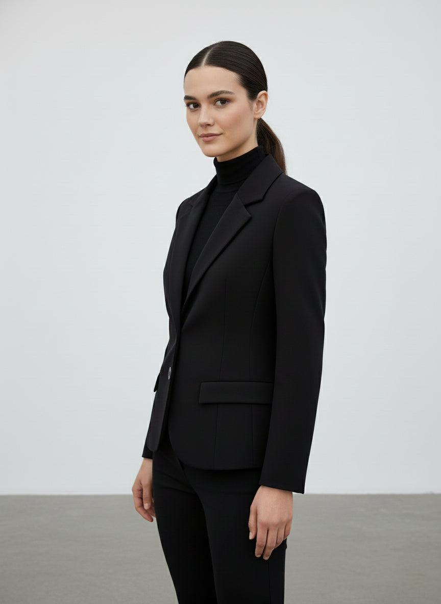Per un outfit impeccabile, abbinala a una camicia bianca in cotone e a un paio di pantaloni coordinati per un look da lavoro chic. Se desideri un tocco più casual, prova a indossarla con un maglione a collo alto e jeans skinny. Completa il tuo look con stivaletti in pelle nera per un effetto sofisticato. Questa giacca non è solo un capo d'abbigliamento, ma un vero e proprio investimento nel tuo stile personale. Non perdere l'occasione di aggiungere questo pezzo versatile al tuo guardaroba, perfetto per la stagione autunnale e invernale.