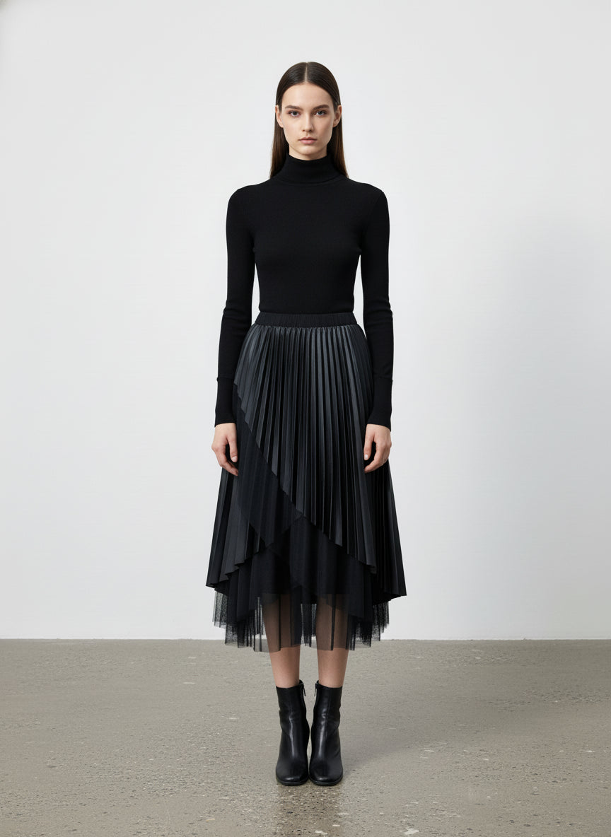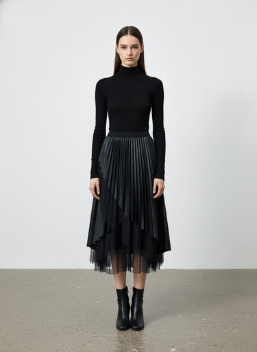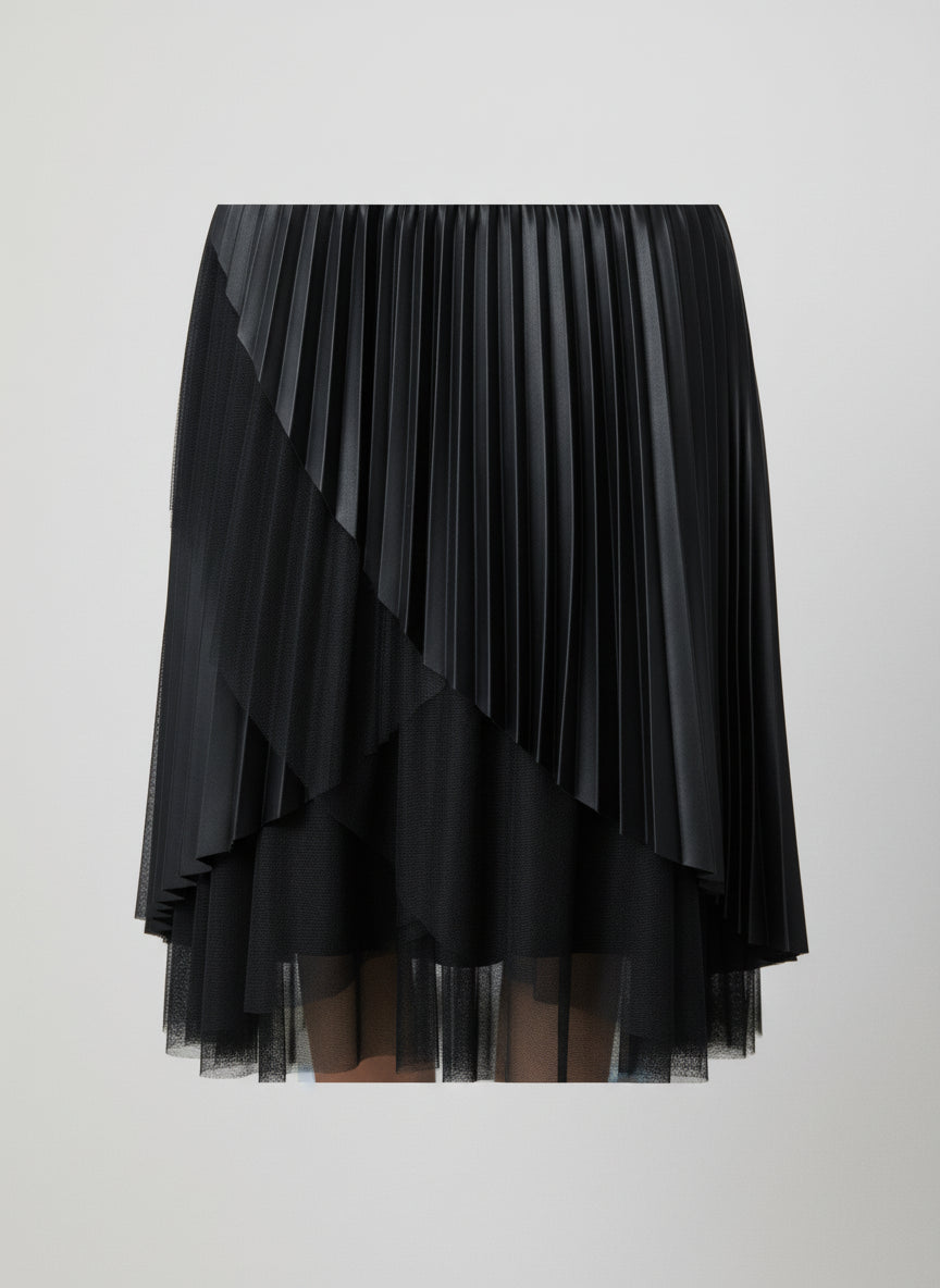 Gonna asimmetrica in ecopelle e tulle