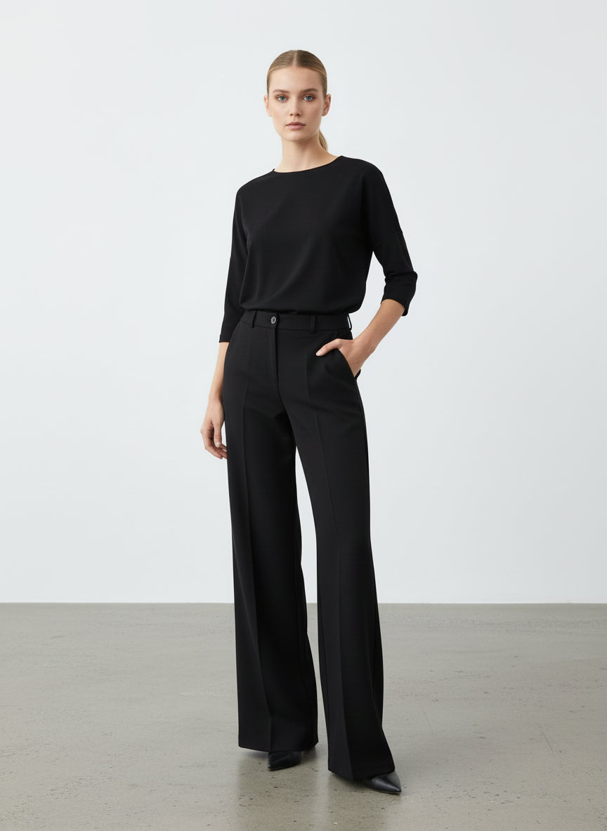 Il pantalone elegante a palazzo è un must-have per ogni donna che desidera un look sofisticato. Realizzato in morbida viscosa, questo capo offre una vestibilità comoda e un'eleganza intramontabile.