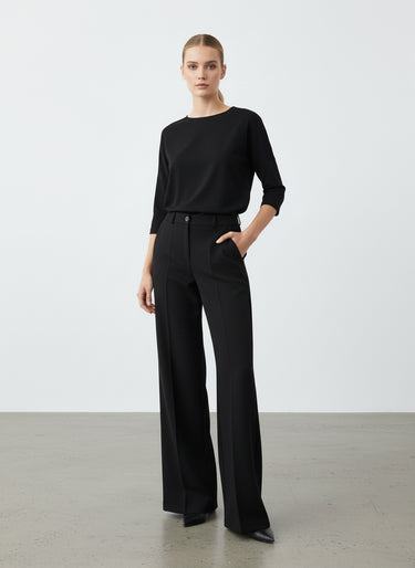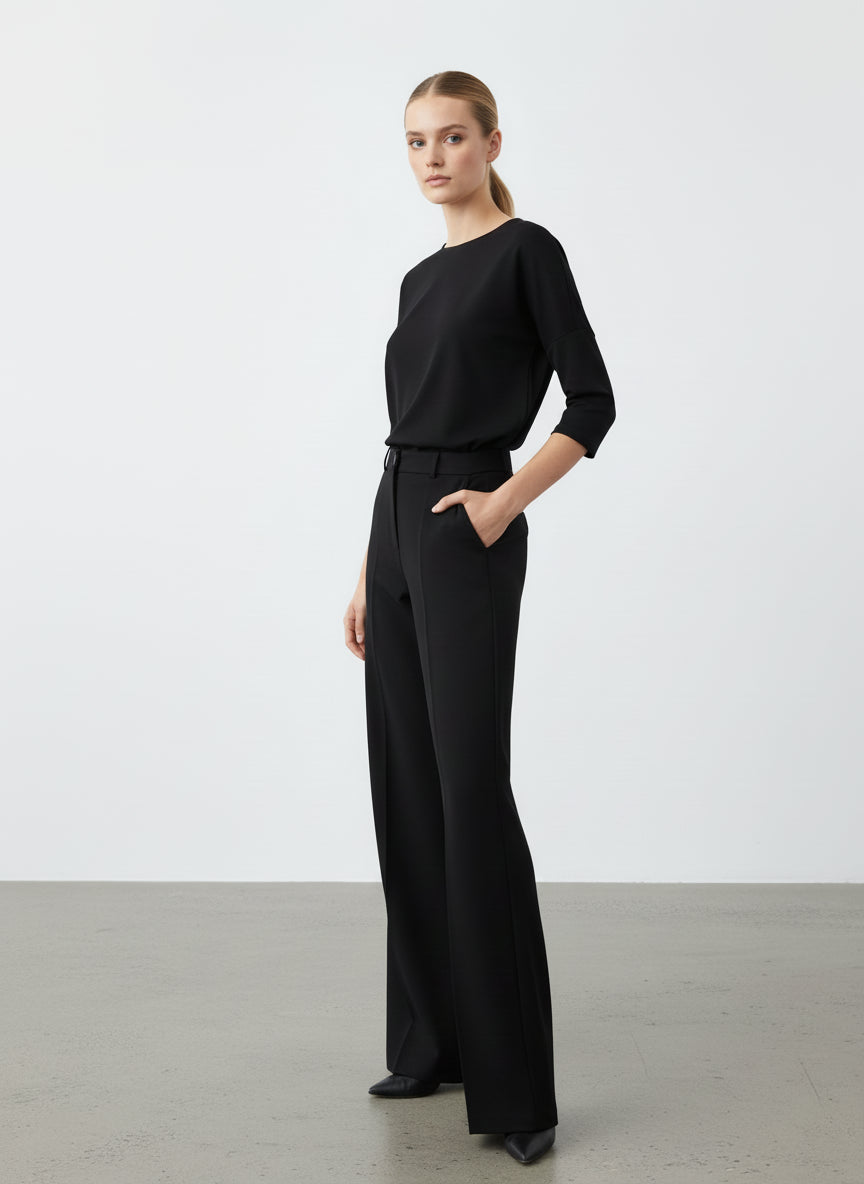 Il pantalone elegante a palazzo è il capo ideale per chi cerca un mix perfetto di comfort e stile. Realizzato in una pregiata miscela di viscosa, questo pantalone si distingue per la sua morbidezza e leggerezza, rendendolo perfetto per le giornate autunnali e invernali. La vestibilità ampia e fluida slancia la figura, mentre la vita alta e la cintura integrata donano un tocco di classe e definizione al punto vita.