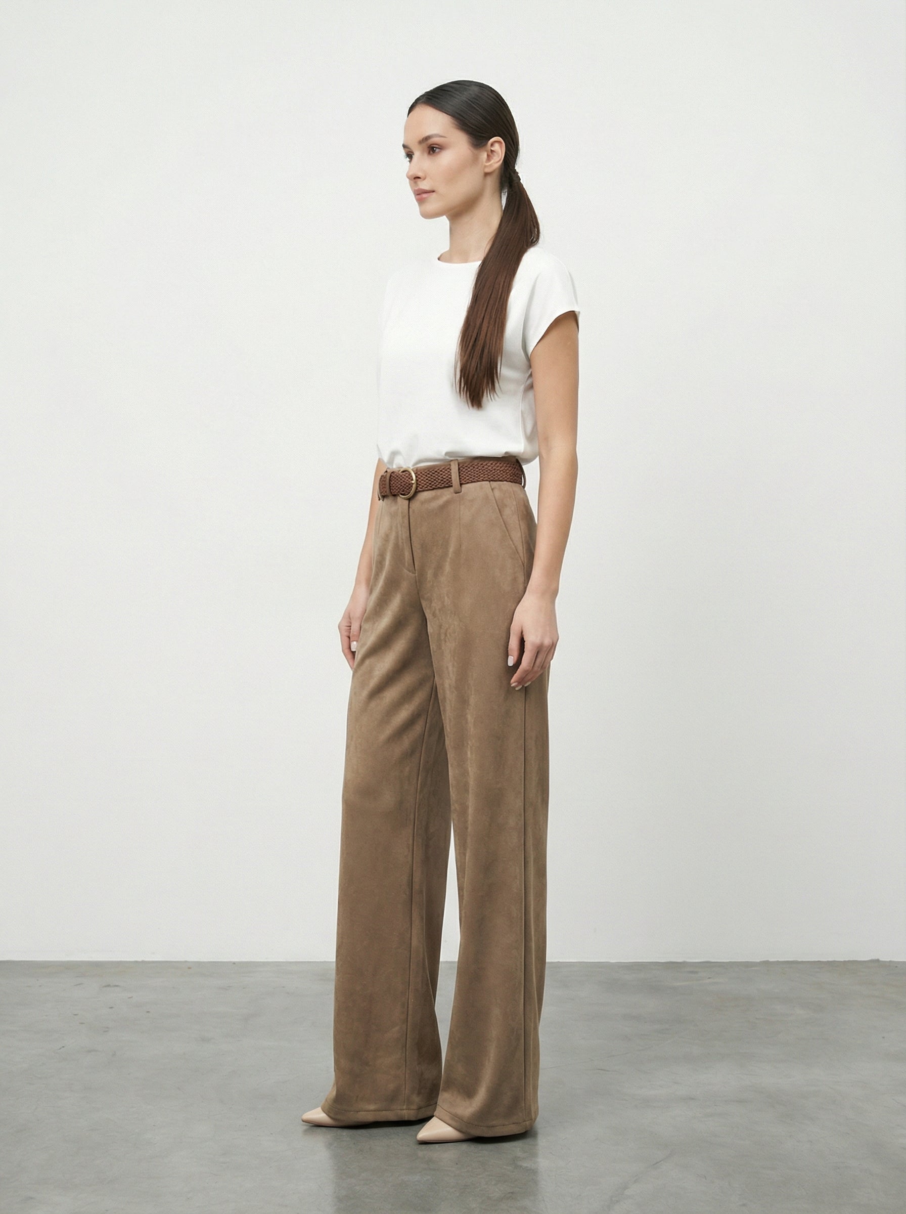 Pantalone palazzo effetto scamosciato
