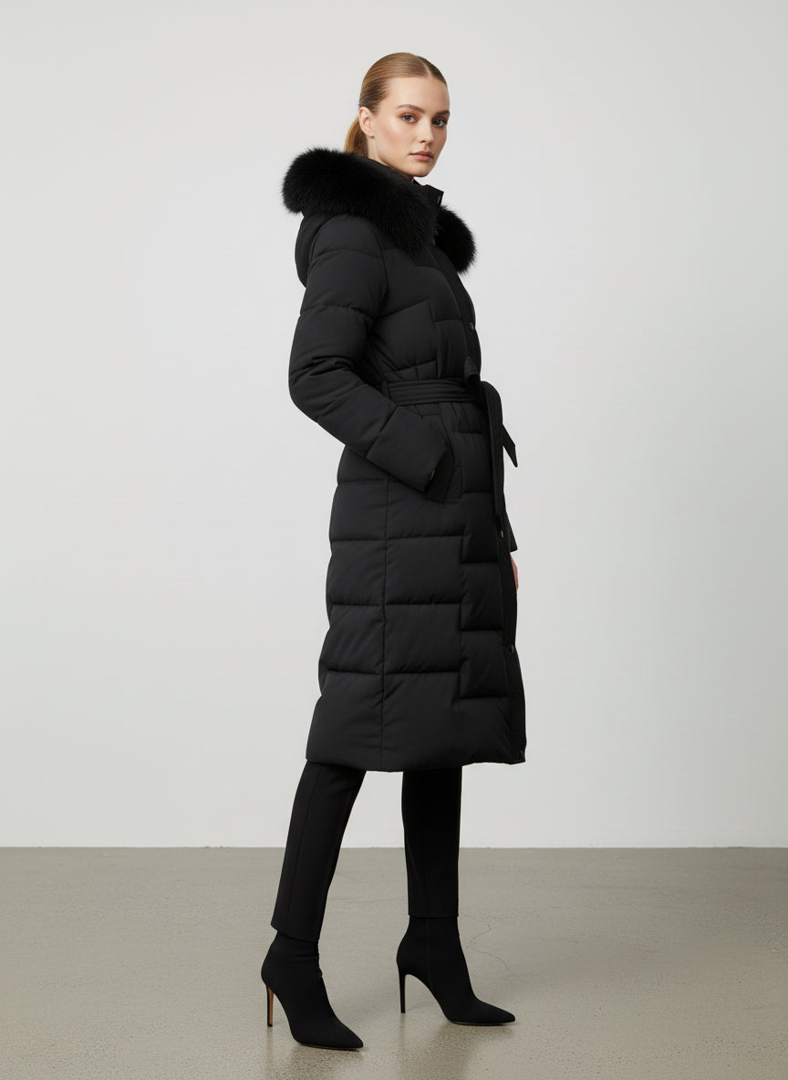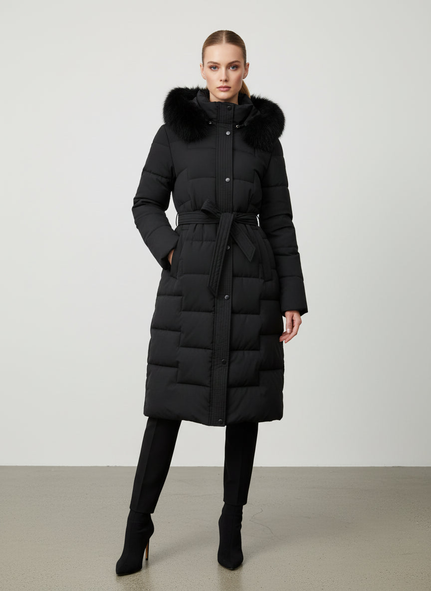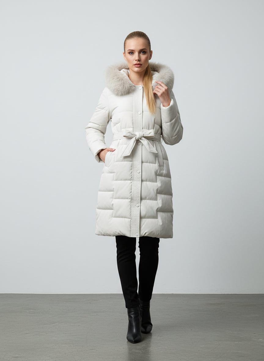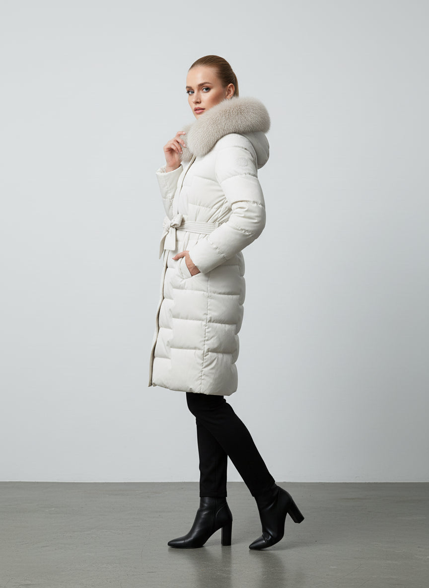 Piumino con colletto in pelliccia
