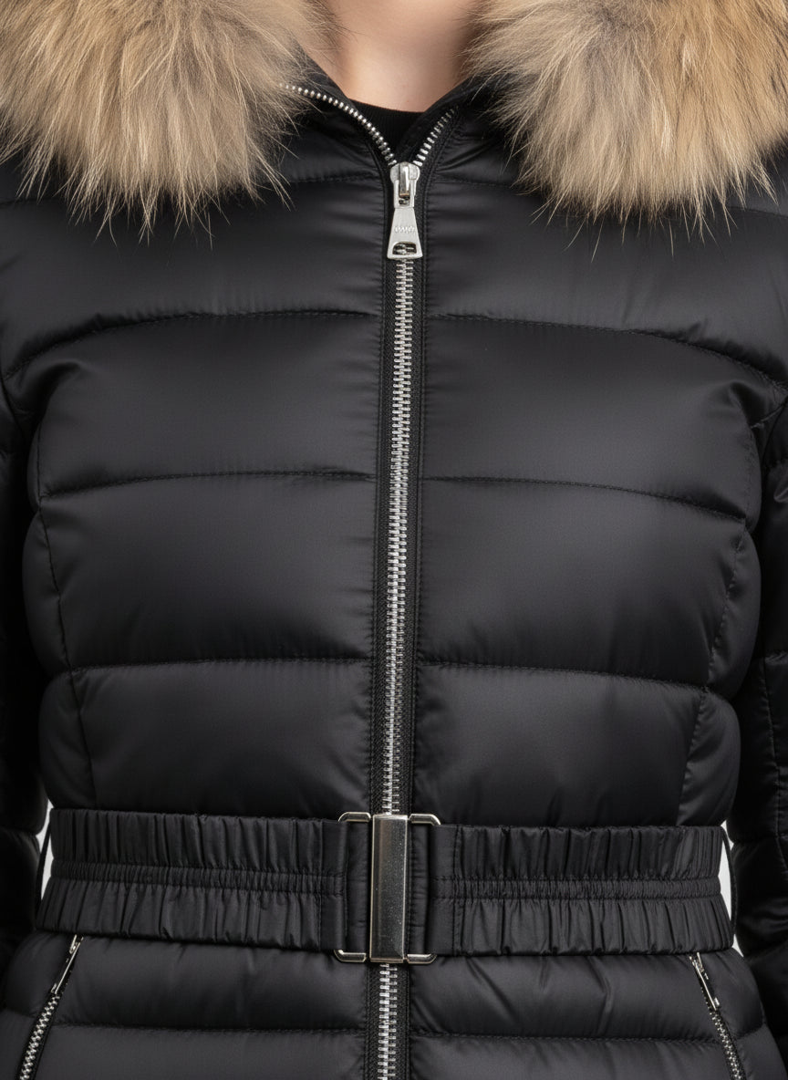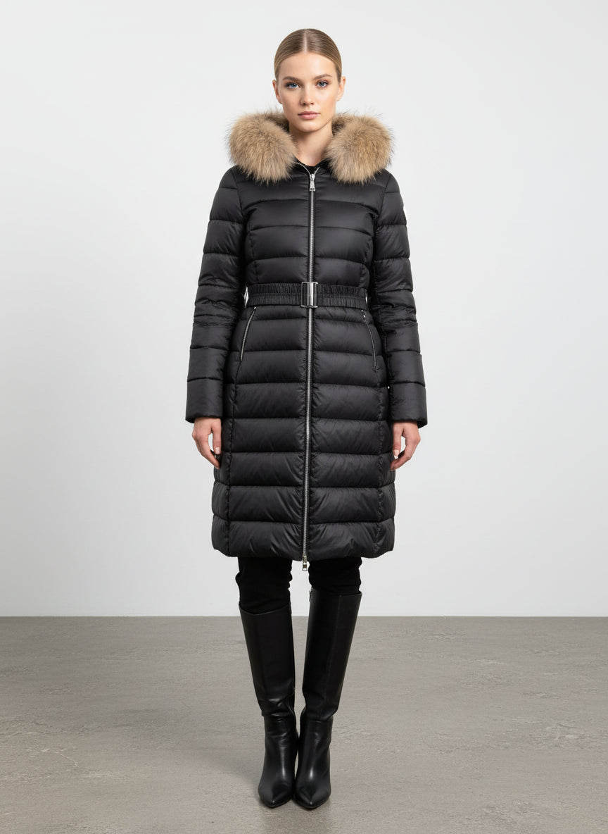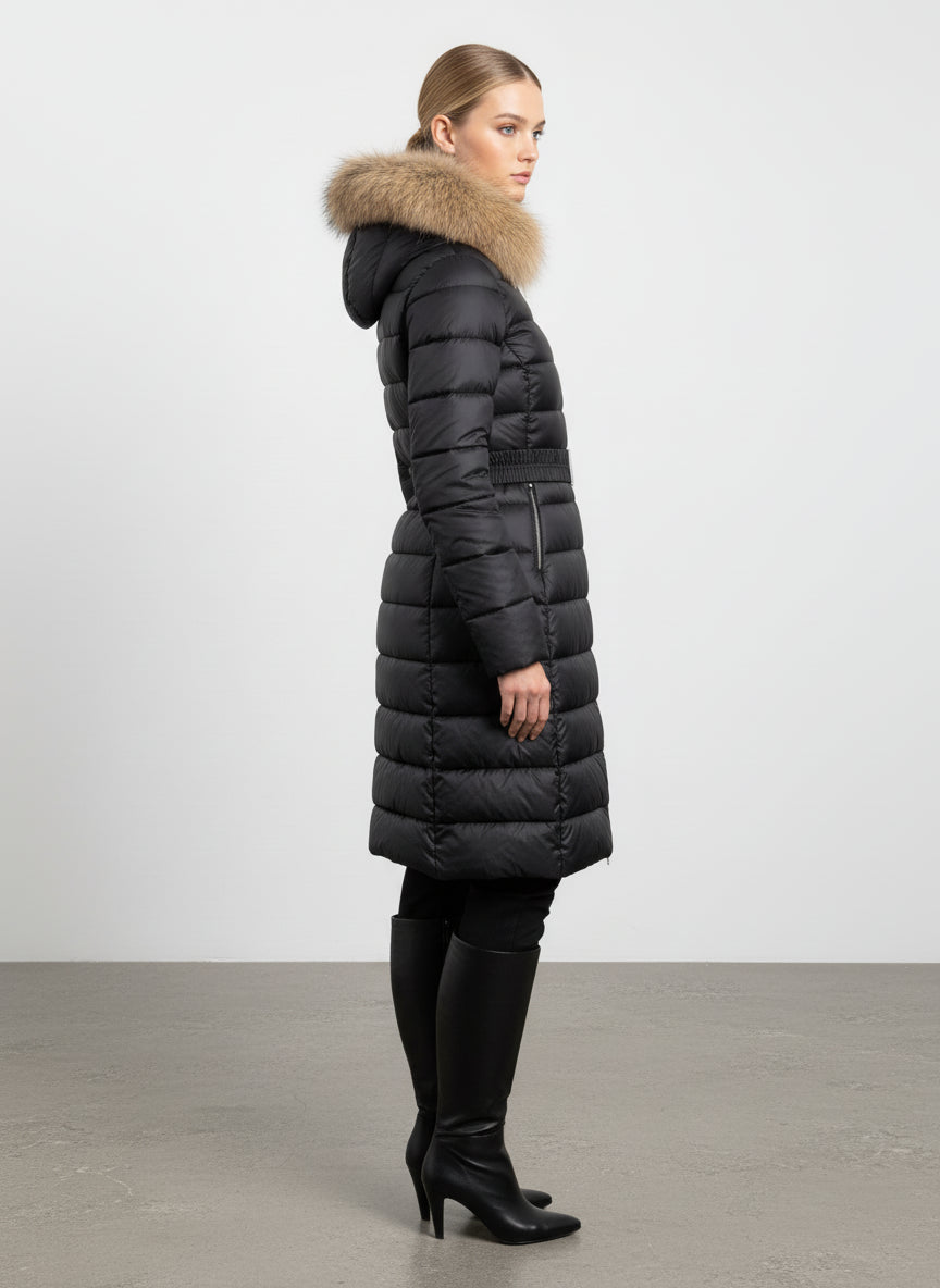 Il piumino lungo con cintura è l'ideale per le giornate invernali. Con il suo design elegante e il caldo colletto in pelliccia, ti terrà al caldo senza rinunciare allo stile.