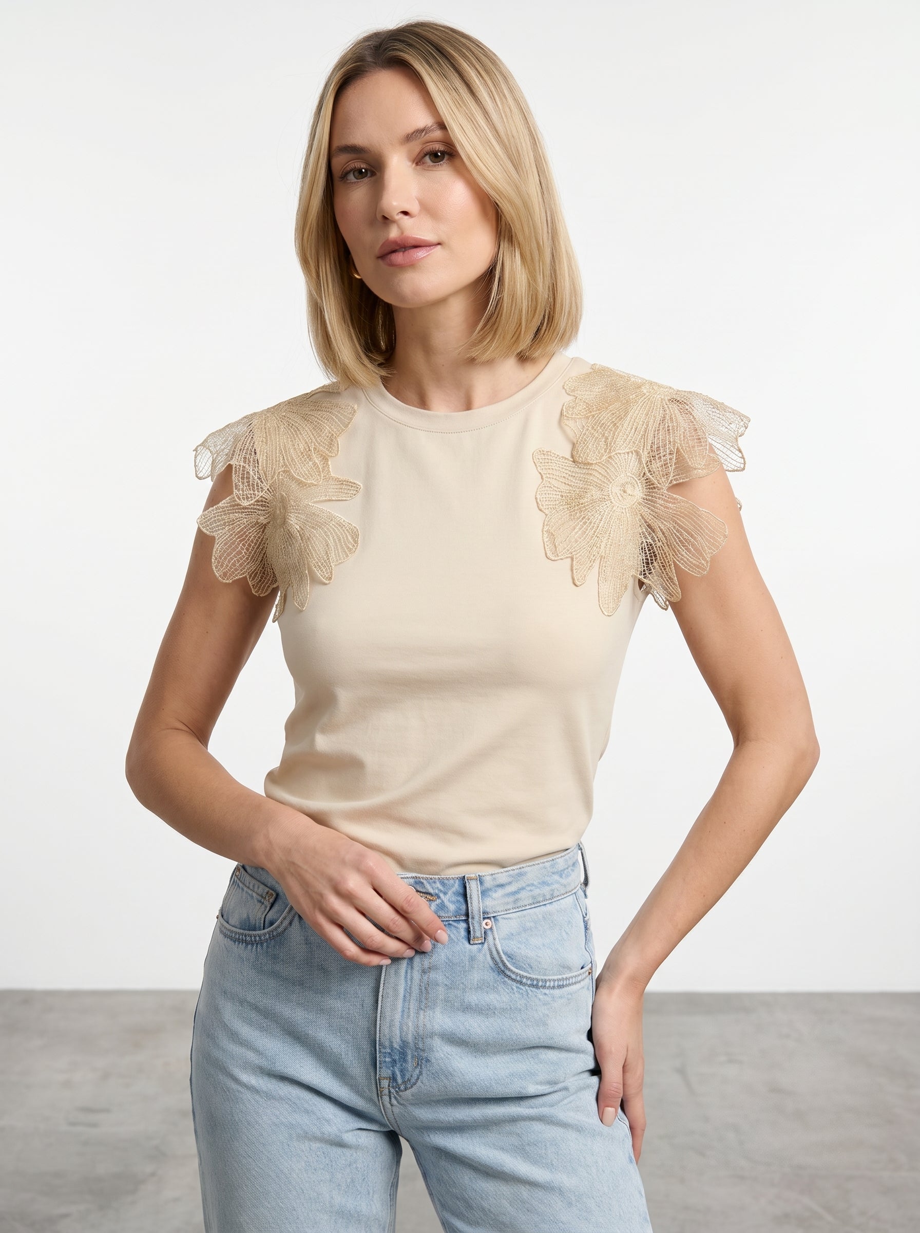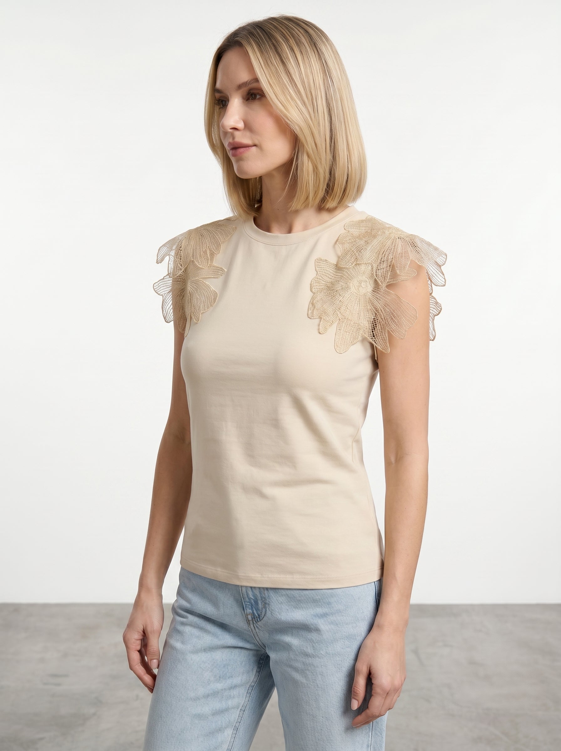 T-shirt con applicazioni floreali